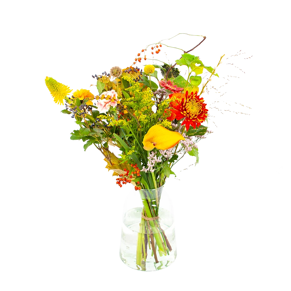 Met Boeket Vrolijk breng je een prachtig boeket in huis met de mooiste tinten voor het najaar! Verwen jezelf met verse bloemen of verras iemand anders! *Exclusief accessoires en vaas.