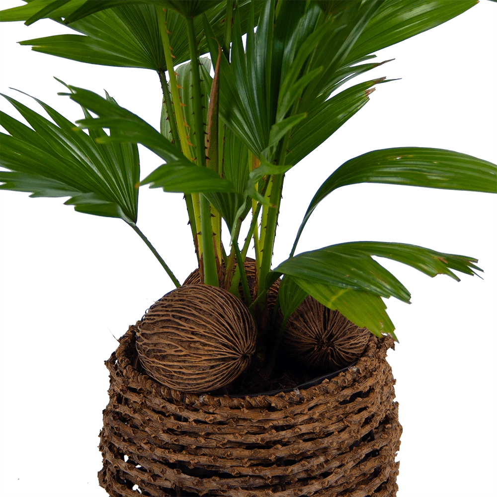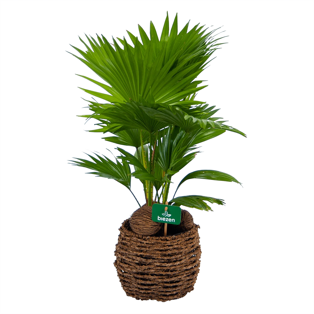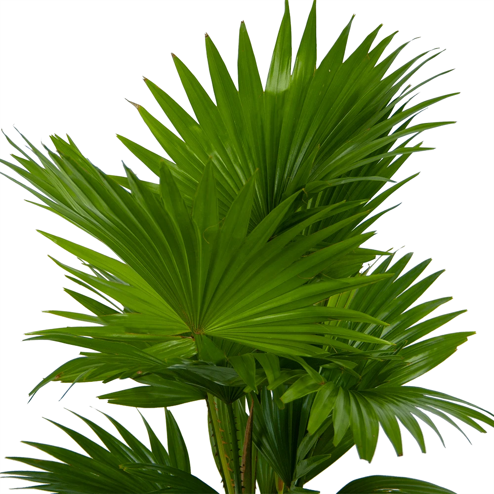 De waaierpalm heeft de bladvingers aan elkaar vergroeid waardoor ze hun grote waaiervormige bladeren hebben gekregen. De Livistonia rotundifolia heeft een luchtzuiverende werking.